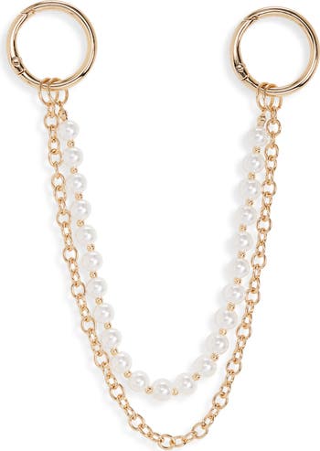 Decorate your favorite tote, backpack or keys with this charm featuring draped strands of goldtone chain links and lustrous faux pearls. Bonus: this personalized touch makes your belongings easy to spot in a crowd.