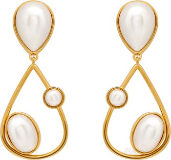 Glossy faux pearls lend a milky glow to these elegant drop earrings that showcase a graceful sculptural design.