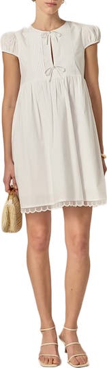 Faux Pearl Detail Scallop Hem Cotton Minidress