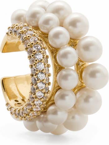 Add extra dazzle to your ear with this charming cuff adorned with cubic zirconia and faux pearls.