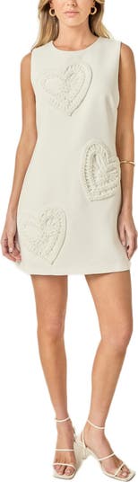 Tailored seaming lends shape to the silhouette of this sleeveless minidress made with faux-pearl detailing on heart-shaped appliqués.