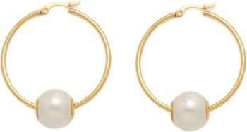 Glowing faux pearls define the center of these stunning hoop earrings that elevate even the most casual look.