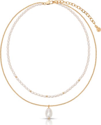 Lustrous faux pearls add an extra level of timeless elegance to a multistrand necklace that creates an effortless layered look.