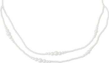 Delicate faux pearl strands layer gracefully on this necklace designed for subtle statement appeal.