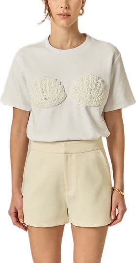 Faux Pearl Seashell Appliqué T-Shirt