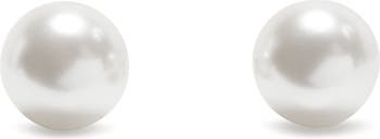 Lustrous faux pearls bring timeless elegance to these classic stud earrings finished with gleaming goldtone plating.