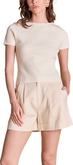 Faux pearls shine along the neckline of this ribbed T-shirt, ensuring it's anything but basic.