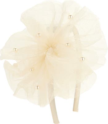 Your kid will shine at every party in this charming headband with an airy tulle bow adorned with glossy faux pearls.