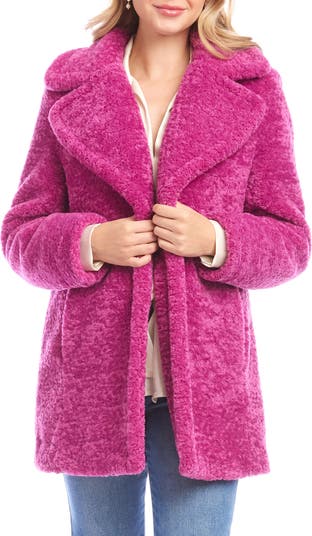 Wrap yourself in this cozy warmth of this colorful faux-shearling coat tipped with notched lapels and fitted with handy front pockets.