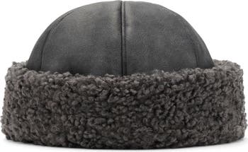 Curled faux-shearling trim covers the wide cuff that encircles this hat that keeps your head warm throughout the chilly season.
