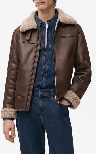 Land your look with a flight jacket made from rugged faux shearling that brings all the supple swagger of the real deal.