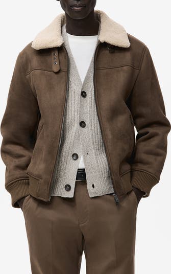 Land your look in a flight jacket made from rugged faux shearling that brings all the supple swagger of the real deal.