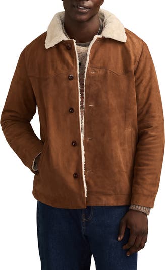 Whether home on the range or out on the town, this Western-style ranch coat keeps you comfortably warm and on perfectly on trend in faux-shearling-lined goatskin suede.