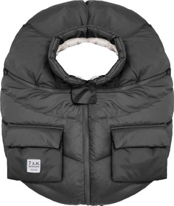 Warmer and more convenient than blankets, this cocoon safely wraps your baby in cozy insulation and faux shearling. Made with elasticized edges, it slips easily on and off any car seat. The front and shoulder zippers unfasten to let in a little cool air without removing it entirely.