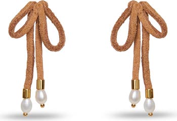 Our bow earrings, featuring the luxe textures of our gilded-inspired fall collection.