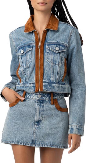 Leaf-raking and dog walking (not to mention coffee-getting) are all approved activities for sturdy jacket cut from nonstretch denim and finished with a faux-suede trim.