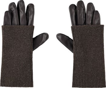 Put the cozy right where you need it with this set that pairs supple lamb-leather gloves with plush knit arm warmers for an added layer of warmth when the chill descends.