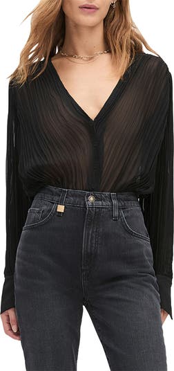 Dropped shoulders enhance the blousy fit of this airy pleated bodysuit that boasts a tucked-in look.