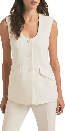 Modern minimalism defines this scoop-neck vest fastened with a trio of tonal buttons and tailored in a sculptural silhouette that gently flares at the waist.
