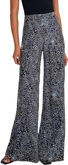 Party like it's a three-day weekend in these high-rise, full-length wide-leg pants made from lightweight woven fabric with a wild cheetah print.