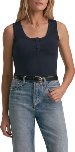 Slim and perfect for layering, this fitted henley tank is made from stretchy fabric that's softly ribbed for added coziness.
