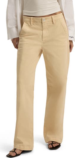 Effortlessly go from work to weekend in these sleek low-rise pants made from \off-white twill with full-length wide legs and trouser-style pockets.