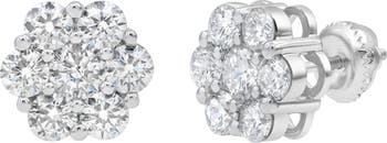 Fawn 14K White Gold Flower Cluster Diamond Unisex Earrings - 2.53 Ct