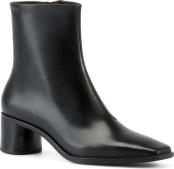 Glossy leather composition refines the look of a square-toed block-heel bootie that's ideal for everyday wear.
