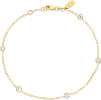 Cubic zirconia bezel stations lend light sparkle to this delicate anklet handcrafted from 14-karat-gold-fill.