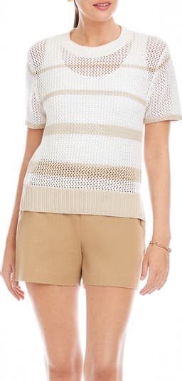 Faye Stripe Short Sleeve Mesh Stitch Sweater