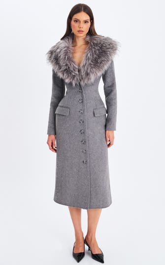 Faye Wool Blend Single-Breasted Coat with Removable Faux Fur Collar