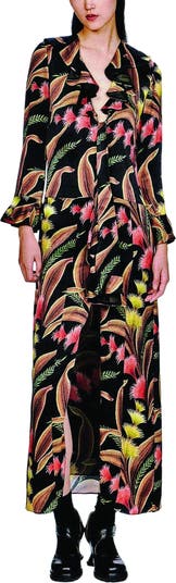 A feather-fern print and soft ruffles at the sleeves and neckline bring playful detail to this effortlessly chic dress. Lightweight and flowy, it’s designed for easy movement and standout style.