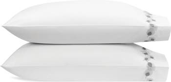 A delicate feather design that combines embroidery and appliqué makes a sophisticated addition to these pillowcases made from fine, luxurious 1,000-thread count Giza 87 Egyptian cotton.