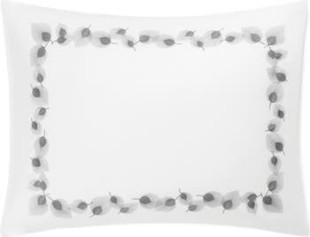 A delicate feather design that combines embroidery and appliqué makes a sophisticated addition to this pillow sham made from fine, luxurious 1,000-thread count Giza 87 Egyptian cotton.