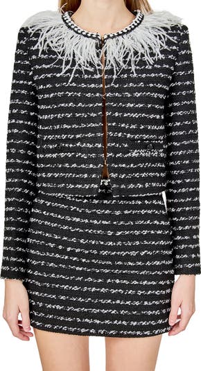 Feather Trim Tweed Jacket