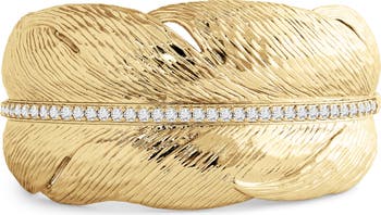 Cubic zirconia fills the center of this sculptural 18-karat gold-plated cuff bracelet that brings feathery light to your look.