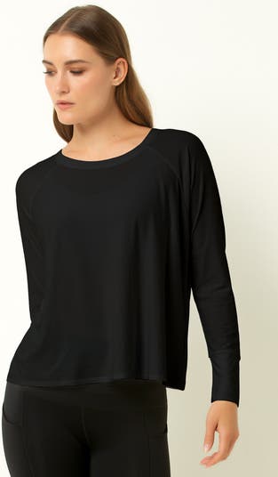 This Featherweight Long Sleeve Top offers soft, lightweight comfort with stretch for easy movement. Its smooth fabric and clean fit make it a versatile choice for everyday wear, whether at home, working out, or out and about.