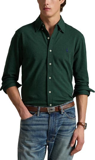 The brand's signature mesh-inspired stretch cotton piqué gives dimension to this classic button-down shirt with a split back yoke and a box pleat for comfortable movement.