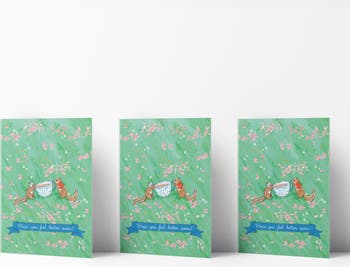 This 3-pack of Get Well/Sympathy greeting cards is elegantly illustrated by artist Ingrid Ramus, founder and owner of the Ramus & Co brand. The cards are blank inside. All greeting cards are made in the USA on heavyweight uncoated and locally-manufactured card stock. Each card is individually wrapped in TUV Austria certified-compostable PLA sleeves that meet both ASTM D6400 & EN 13432 standards. Each card is accompanied by a hand-embossed envelope made with heavyweight 95lb paper and a peel-and-stick flap - no licking envelopes here! All Ramus & Co. greeting cards are printed on FSC© and SFI© certified paper sourced from a regional mill that harnesses 66% of its energy from on-site sustainable sources, such as emission-free hydroelectricity and biomass co-generation from wood waste. Additionally, our greeting cards are thoughtfully packaged in bags made from certified compostable PLA material. Husband-and-wife team Calvin and Ingrid Ramus founded Ramus & Company in 2019, in New England, USA. Ingrid, the creative designer behind the brand, originates from Mexico, where she cultivated her skills in fashion and textile design. Drawing from her unique and inquisitive perspective on preppy style, Ingrid prolifically designs whimsical yet classic stationery and lifestyle items..