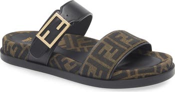 The FF-shaped buckle of the Baguette line adds a hint of glint to an Italian-crafted slide featuring a comfort-focused, molded footbed.
