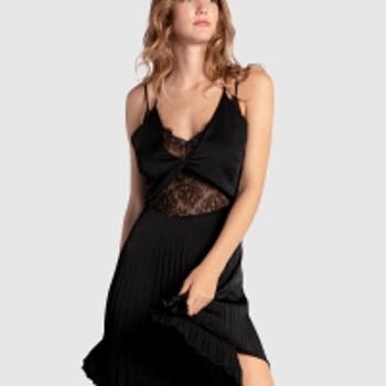 The Feel It Still Lace Trim Mini Dress features adjustable double straps which add to its playful elegance and a layered bodice with soft sheer lace peeking through at the neckline and waist. Buttery soft satin pleats ensure easy movement while you dance the night away.