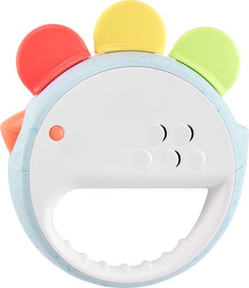 Your little one will love making noise with this playful tambourine toy designed to look like a chicken in bold and bright colors that are sure to catch their eye.