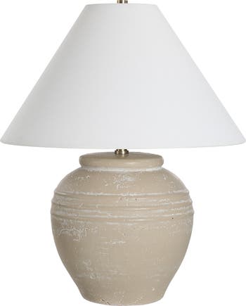 Add a gorgeous glow to your space with this dimmable lamp showcasing a hand-thrown, painted ceramic base and a tapered linen shade.