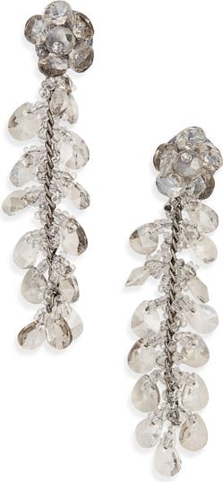 Crystal beads catch the light on these romantic earrings composed of floral studs suspending leafy chain drops.