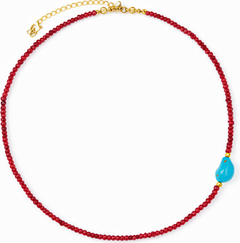 Let your layering look do the talking with this colored beaded necklace. This handmade necklace is fully adorned with vivid jade beads and features a standalone turquoise stone on the side. Whether worn solo or layered up, this beaded piece is sure to turn heads.