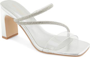 Make your next occasion extra special with this block-heel sandal topped with shimmering crystal-studded straps.