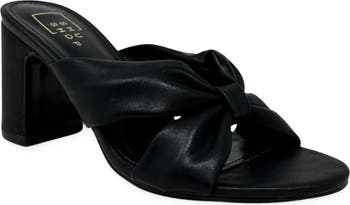 Knotty faux-leather straps and a sturdy block heel shape the versatile silhouette of this easy-on sandal fitted with anatomical support and a cushioned footbed for daylong comfort.