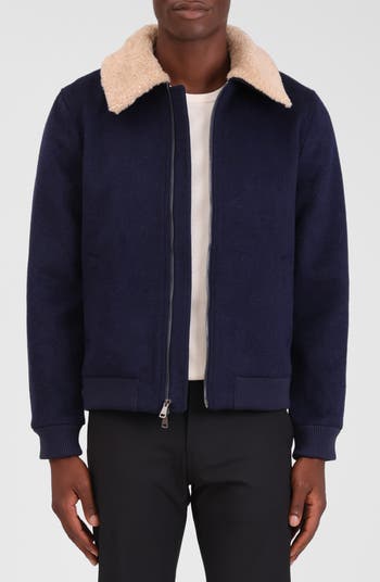 Brushed for softness and designed for warmth, this aviator jacket made with breathable wool features a plush fleece collar topping the look with old-school authenticity. A lightweight lining and layered placket add extra protection when the temperatures drop.