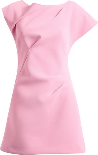 Soft pleats enhance the texture and dimension of this smooth crepe mini framed by drapey dolman sleeves.