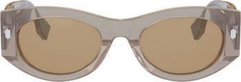 Polished logos accent the temples of Italian-made oval sunglasses fitted with UV-protective lenses.